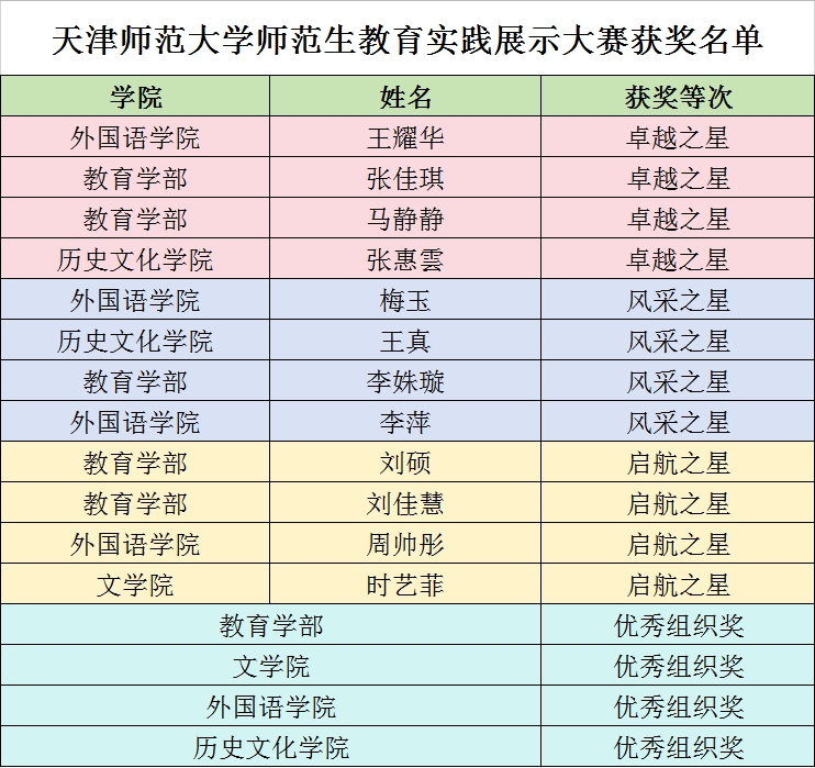 大赛设置卓越之星、风采之星、启航之星等奖项,对在教育实践展演中表现突出的集体和个人予以表彰。
