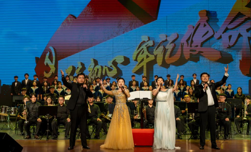 薪火相承,初心如磐。管乐合奏《管韵筑梦》以激昂的旋律共同奏响师者领航的梦想乐章;“静静的深夜群星在闪耀,老师的房间彻夜明亮。”一首《每当我走过老师的窗前》唱响了对师者无尽的感恩与敬仰,歌曲《不忘初心》更是将整场音乐会推向高潮。活动在全场齐声高唱《我们走在大路上》中圆满落幕。