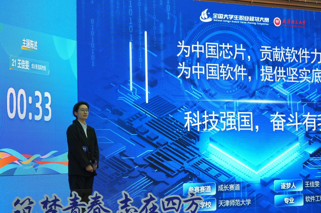 在全国总决赛的舞台上,师大学子展现出勤奋严谨、奉献报国的青春风采,他们将专业所学与国家和社会需求紧密结合,以实际行动践行将“小我融入大我”的新时代青年担当。经过主题陈述和综合答辩,计算机与信息工程学院、软件学院软件工程专业王佳雯获成长赛道金奖,心理学部应用心理学专业曾芝程获就业赛道本科生组金奖,政治与行政学院政府治理与公共政策专业扈馨予获就业赛道研究生组铜奖。