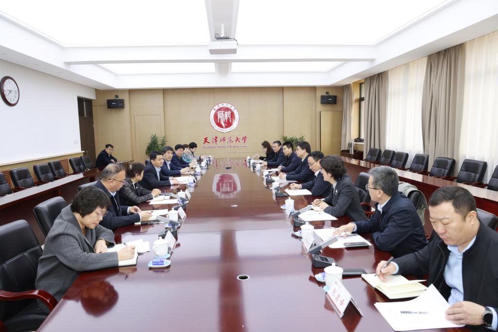 巩金龙代表学校向张军一行来访表示欢迎,感谢内蒙古师范大学长期以来对我校的关注和支持。他指出,天津师大深入学习贯彻党的二十届三中全会精神和全国教育大会精神,锚定教育强国建设规划纲要推动学校工作提质增效。两校作为同处华北五省的地方师范高校,人才培养的规格和质量对区域公民素养提升、思维模式形成和基层治理水平提高具有基础性、战略性作用。巩金龙强调,学校第九次党代会明确了建设特色鲜明世界知名一流师范大学的战略目标,在“新师范”培养模式的探索中,两校在学科建设、人才培养、高水平科研、人才队伍建设、人工智能+等方面互联互通、互取所长,这既是双方在新形势下同频共振、同题共答、同向同行的新起点,更是两校共同探索教育强国创新举措,共同促进地区经济社会高质量发展的宝贵契机。