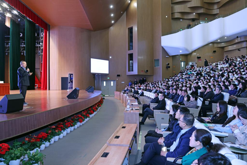周其凤院士从自身丰富的学术与教育管理经验出发,深入浅出地阐述了教育的本质、价值以及在新时代背景下教育工作者肩负的使命与责任。他结合当前教育改革的热点问题,分享了对未来教育发展的深刻见解。报告内涵丰富、思想深刻、启发性强,为现场师生深入学习贯彻落实党的二十届三中全会精神、全国教育大会精神和习近平总书记关于教育的重要论述,建设面向未来的高素质教师队伍提供了宝贵的理论指导,指明了教育实践方向,激发了大家在教育领域不断探索和创新的热情。