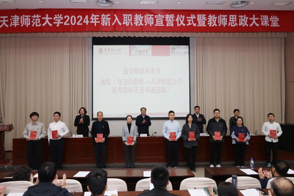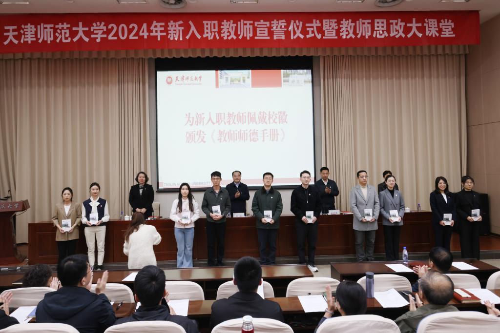 宣誓仪式在纪录短片“大力弘扬教育家精神 传承师大治学文脉—我们的大先生”中拉开帷幕。曲凯代表学校向新入职教师表示热烈欢迎和诚挚祝贺,并以“大力弘扬教育家精神,培根铸魂争当育人先锋”为题讲授师德首课。