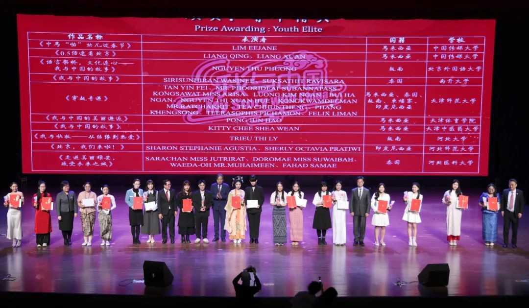 与会嘉宾共同观看京津冀学生展演作品,展演在彰显东盟风情的民族舞蹈串烧《多姿》中拉开序幕,原创音乐快板作品《“我与中国”情意长》展现东盟学子中文水平和精湛才艺的同时,流露出一种深厚的情怀和热爱;海外组织方以及选手采访VCR“中文改变了我”中选手们的真情流露感人至深,诠释了“语言是文化交流钥匙”的真正含义;北京高校展演作品《你好北外——青春之舞》在讲述青春风采和中国故事的同时,点燃了青春跃动、共赴新程的理想火焰;舞台剧《穿越奇遇》完美演绎了古代与现代因文化传承创新发展而碰撞出的别样火花;河北省高校选送节目《诗经东南风》中,东盟青年用东南亚歌曲唱诵诗经,播撒语言互通、理解互信、文明互鉴的种子;在“我与中国”非遗市集游园会中,天津高校东盟学生选手将文化市集搬到舞台,为现场观众送上新颖独特的文化创意和实践体验;AI创意对话展示《魅力中文》在展示科学创新发展的同时,抒发了希望科技之光引领国际中文教育走向更美好未来的愿望。