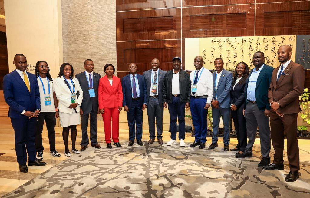 我校毕业生彼得(右四)在2024年中非合作论坛峰会期间担任肯尼亚总统代表团翻译