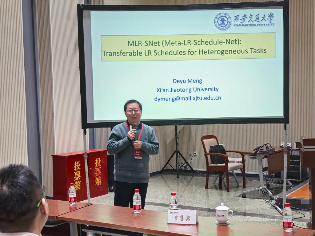 西安交通大学孟德宇教授以《MLR-SNet(Meta-LR-Schedule-Net):Transferable LR Schedules for Heterogeneous Tasks》为题作报告。为了解决学习率调度设置问题,他介绍了用一个显式的映射公式(称为MLR-SNet)对LR调度进行参数化,并将元学习的MLR-SNet转移到查询任务中,如不同的训练时期、网络架构、数据模式、训练数据集大小等,实现了很好的性能。