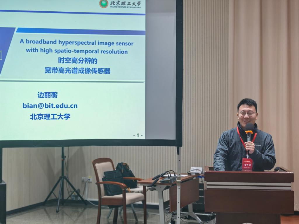 北京理工大学边丽蘅教授以《时空高分辨的宽带高光谱成像传感器》为题作报告。他介绍了一种片上计算光谱成像架构,并基于此架构成功研制了百通道百万像素高光谱实时成像器件。该器件仅重数十克,工作波段覆盖了可见光和近红外超宽波段,具有国际领先的时-空-谱分辨率和光能利用率,已成功应用于糖分检测、血氧检测、水质检测、纺织物分类、遥感探测等。