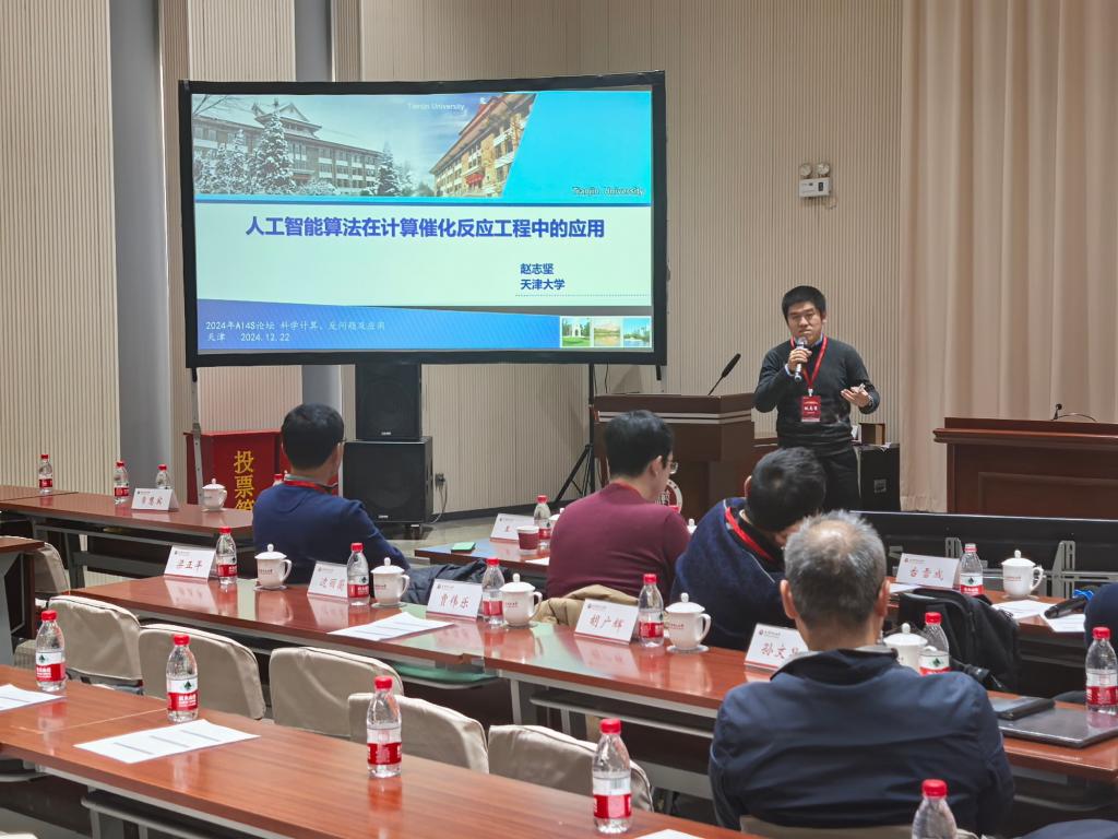 天津大学赵志坚教授以《人工智能算法在计算催化反应工程中的应用》为题作报告。他展示了以“计算催化反应工程”为研究主线,以密度泛函理论计算为基础,结合遗传算法、神经网络等人工智能算法,以低计算成本实现“工况”条件下模拟工业催化过程,指导高活性、高选择性工业催化剂的开发,发展了包括Pt基、Cu基催化剂在内的丙烷脱氢制丙烯、CO2电还原等一系列新型高效催化剂。