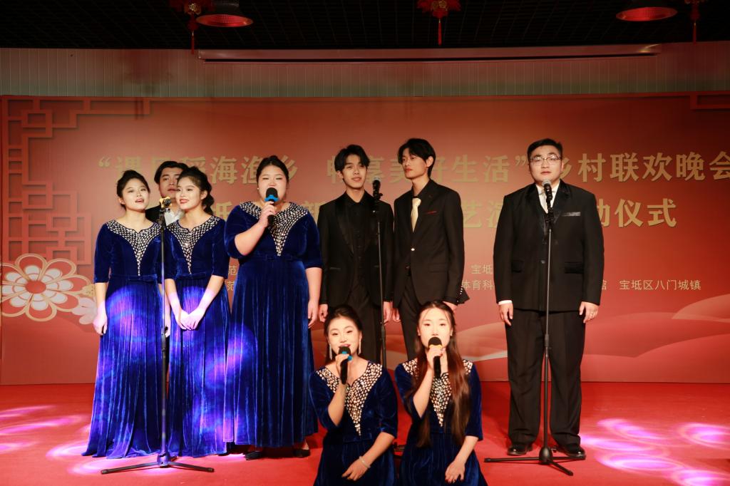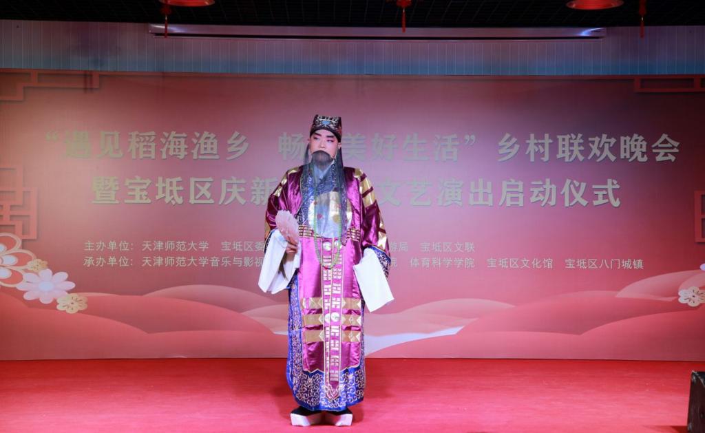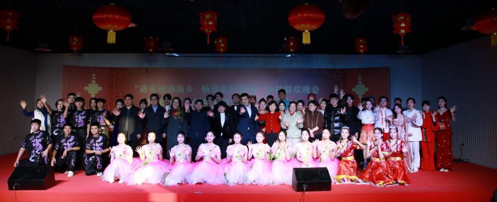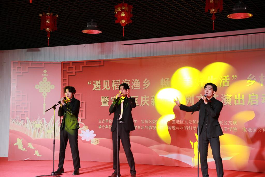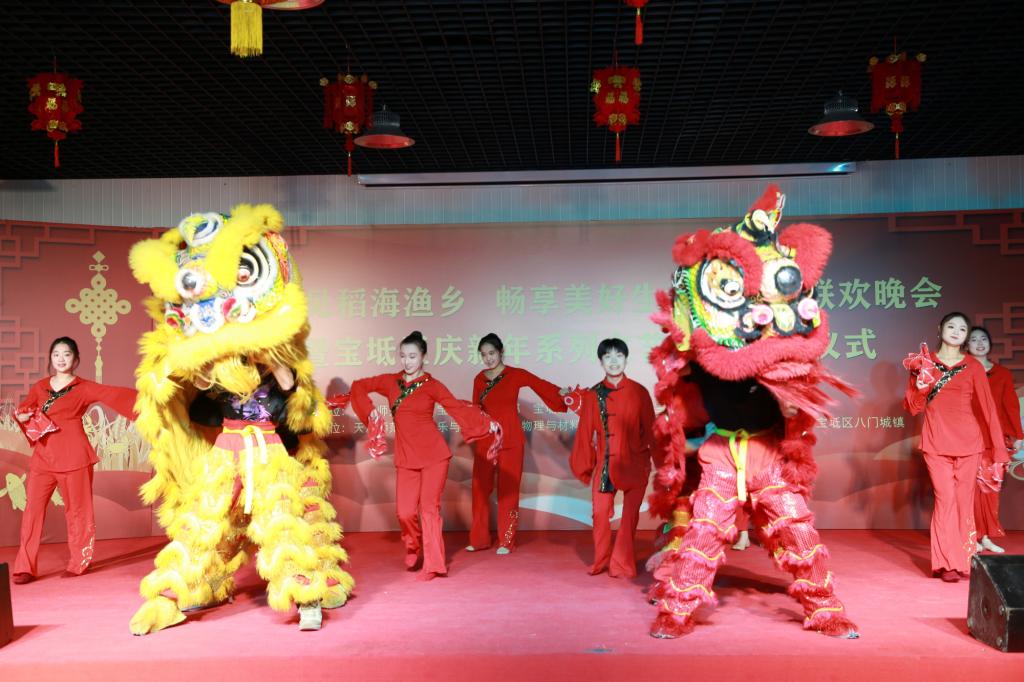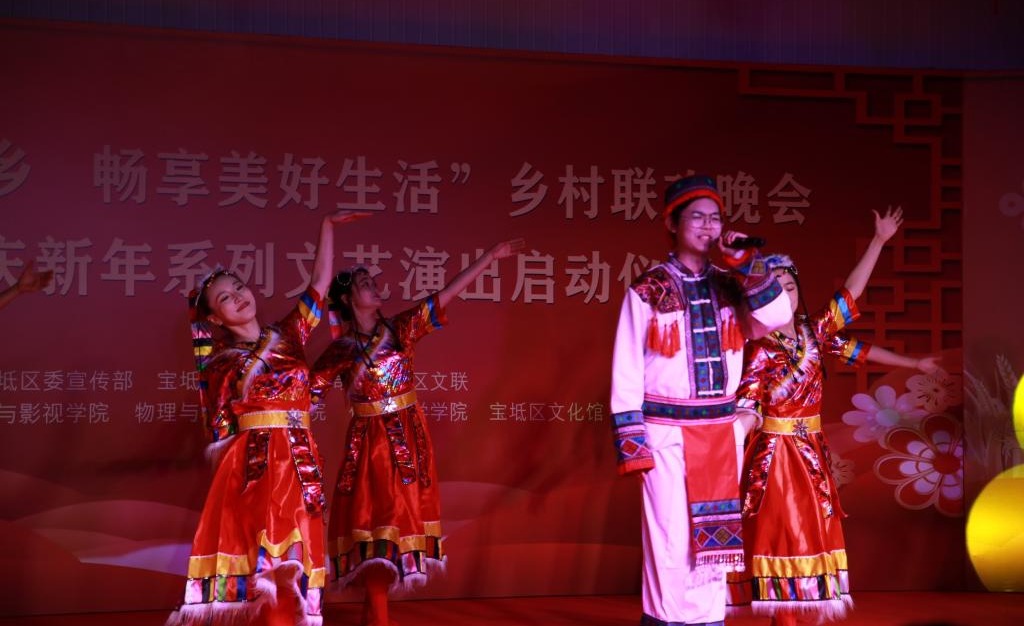 伴随着《好运来》欢快愉悦的歌声和翻腾跳跃的传统舞狮表演,联欢晚会拉开帷幕。歌曲《少年中国说》唱出了少年强则国强的豪情壮志和担当精神;物理与材料科学学院科普实践团带来的科普秀在展示科学魅力与神奇的同时,抒发了希望科技之光引领乡村走向美好未来的愿望。歌曲联唱《向云端》《冬天里的一把火》用悠扬的旋律,点燃热情的火焰,驱散冬日的严寒。书画作品赠送仪式中的精美墨宝充分展现了“淡雅之韵绘传奇,墨香四溢沁心脾”的魅力。京东大鼓《送女上大学》和京剧《空城计》带领观众走进中华华优秀传统文化的世界,感受中国的独特魅力和深厚文化底蕴。歌舞《吉祥欢歌》用欢快的旋律和优美的舞姿,为村民们送上诚挚的新年祝福。相声《歌曲人生》彰显语言魅力,播撒欢声笑语。融合现代节奏与传统民族元素的歌曲《最炫民族风》将现场氛围推向高潮。在歌曲《难忘今宵》经典的旋律中,此次乡村联欢晚会画上句号。