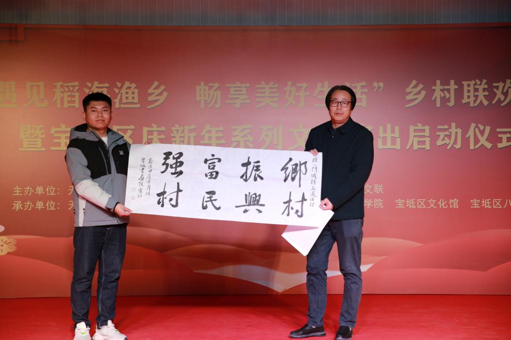 贾雪娜宣布晚会开幕,宝坻区文化和旅游局党委书记、局长巩慧介绍宝坻区庆新年系列文艺演出活动。