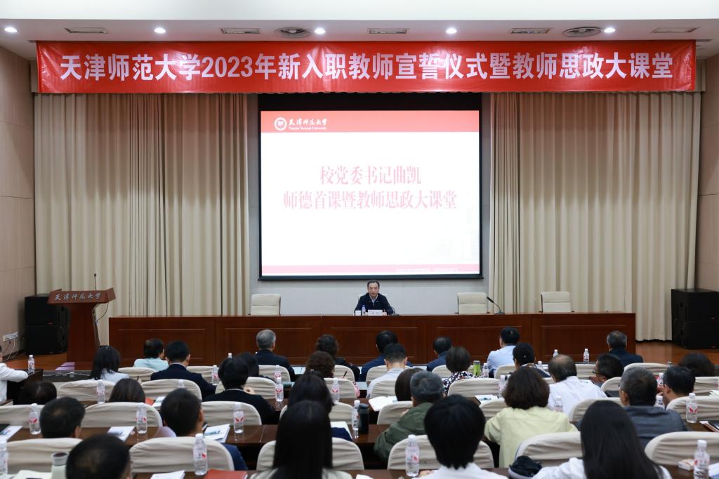 学校始终把师德师风作为评价教师队伍素质的第一标准,将师德师风建设与教师思想政治教育有机融合,构建全员全方位全过程师德师风建设体系;实施“师德首课制”“师德首谈制”“师德承诺制”“师德研判制”“警示通报制”“师德考核制”六项基本制度;举行新教师入职宣誓仪式,在全体教师中组织开展师德承诺;严格师德考核,切实发挥指挥棒作用;加强警示教育,强化日常行为约束;加强教师行为监测督导,把问题化解在早化解在小;建立师德师风督导检查指导制度,打通师德建设“最后一公里”,形成“党委领导、部门统筹、基层落实、教师自律”的大教师思政格局。