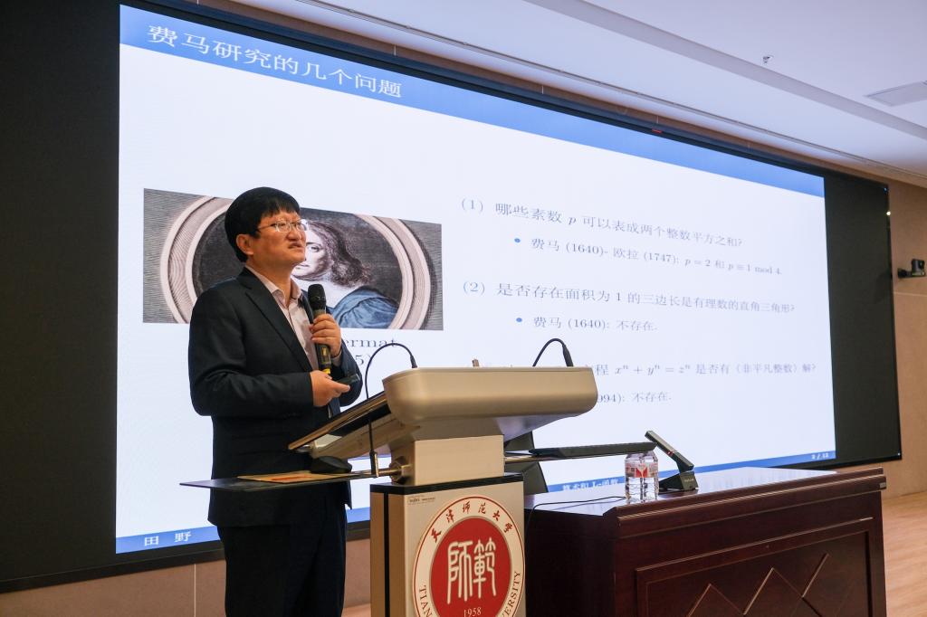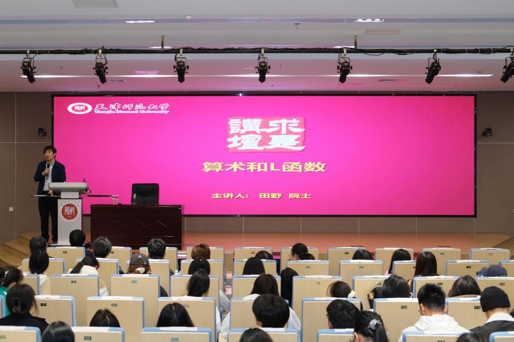 报告中,田野院士从费马研究的三个著名问题入手,介绍了同余数问题,并利用“欧拉-黎曼zeta函数”、素数定理和黎曼假设等详细讲述了椭圆曲线的L-函数理论和“同余数的BSD猜想”之间深刻的内在联系,阐述了解析数论的起源,并展现了它在数学进程中的重要作用。田野院士的报告聚焦数学学科的前沿问题,注重数学思想的引导和启发,大大开拓了师生的学术眼界,提高了数学学习和研究的兴趣。
