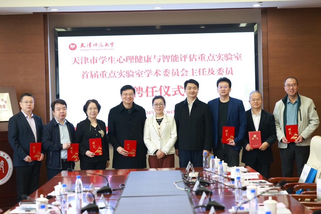 巩金龙为学术委员会主任陶建华及委员傅小兰、胡斌、胡清华、白学军、杨海波、赵子平颁发聘书。汤桂兰与白学军共同为重点实验室揭牌。