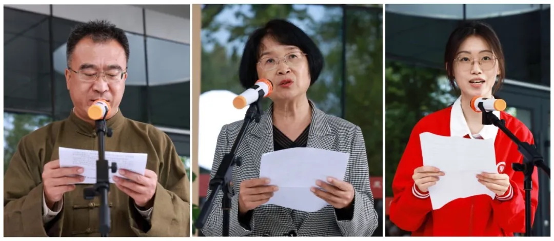 仪式现场,巩金龙手执“校史馆志愿讲解队”队旗,亲自授予讲解队负责人。古籍保护研究院王振良研究员作为教师代表发言,他表示,校史馆建成开放为研究天津教育史特别是师范教育史提供了丰裕资料,将带领学生投入更多精力关注校史研究,深入挖掘背后的精神价值和深远意义,助力校史馆建设成感受师大文化和师大精神的坚强阵地。饮水思源,作为我校优秀校友代表,侯立瑛深切感谢母校栽培,她谈道,校史馆是连接校友与母校的桥梁,馆内珍藏的照片和物件承载校友们的青春岁月,校史馆将成为校友的精神家园和在校师生前行的灯塔,将密切关注母校的建设和发展,祝愿母校宏图更展再谱华章。志愿讲解队队长、文学院汉语言文学专业2201班时艺菲同学代表校史馆志愿讲解队发言。她表示,讲解队将充分利用校史资源,扎实提高讲解能力,持续优化讲解内容,主动担当起传播校史文化的使命,为传承师大精神贡献青春力量。
