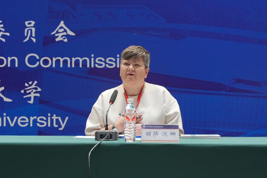 天津市第五十四中学的英语老师牛星媛作为任课教师代表,分享了在苏格兰及周边的几所中小学教授中文课程的任教经历。