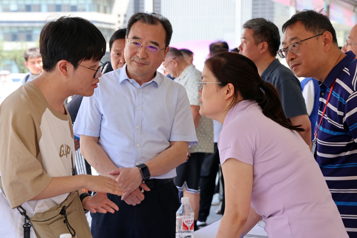 校党委书记曲凯走进开放日现场,看望并慰问咨询工作人员,详细了解活动开展及咨询准备情况,与来访考生和家长亲切互动交流,答疑解惑。