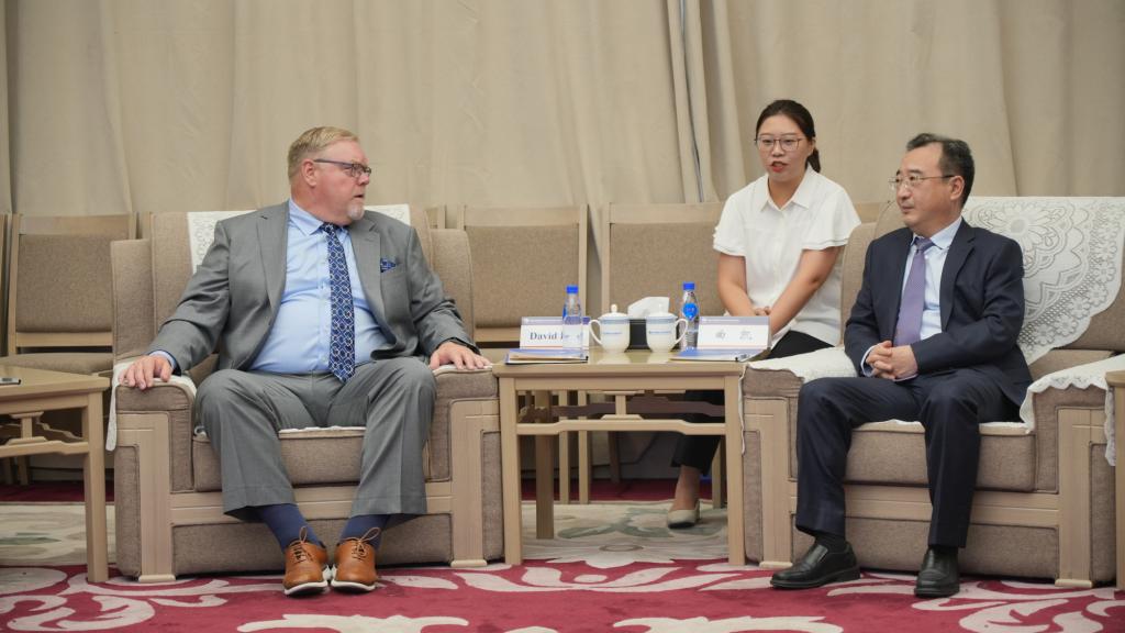 部校共建国际中文教育发展研究院消息(通讯员 赵英东)近日,美国明尼苏达州明尼唐卡学区学监大卫·劳(David Law)一行15人来校访问。我校党委书记曲凯会见客人。世界汉语教学学会会长、我校部校共建国际中文教育发展研究院院长钟英华,明尼唐卡学区副学监艾米·拉杜(Amy LaDue)陪同会见。