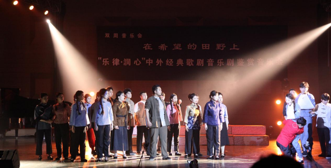 最后,声乐表演系学生、外籍教师和我校留学生的一曲合唱《在希望的田野上》将本场音乐会演出推向高潮。