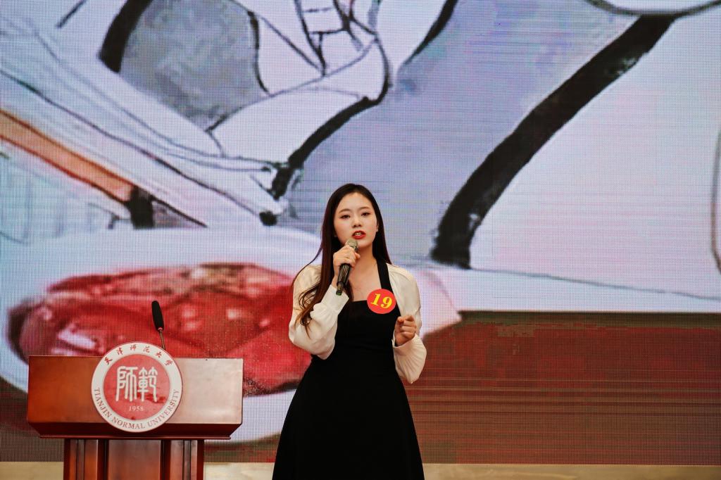 活动现场,同学们通过现场朗诵、命题演讲、问题作答等形式讲述自己心中最精彩的中国故事,发出最动人的中国声音,展现最独特的中国魅力,为在场师生呈现出有家国情怀、有使命担当的师大学子靓丽风采。中华美食、民俗节日、神话传说、成语典故、茶文化、传统图腾、现代科技、人工智能、模范事迹……师大学子用双语展示中华文化,带你在故事里读懂中国。