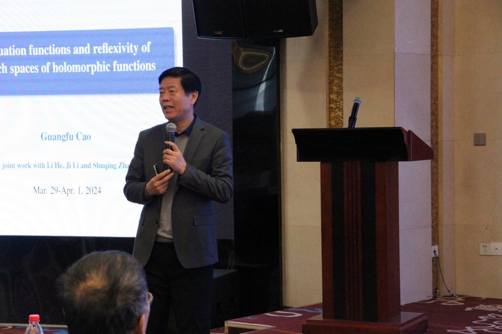 郭坤宇为会议开幕式致辞,倡导大家积极交流,充分展示科研成果,促进学术交流与合作,共同推动算子理论与算子代数领域的发展。