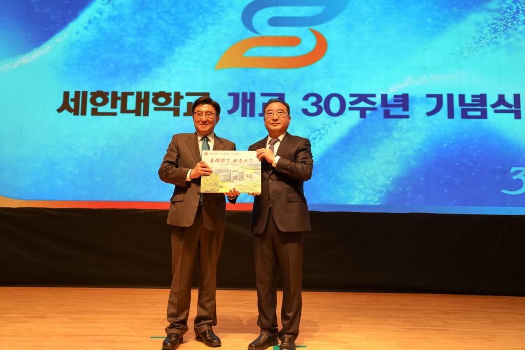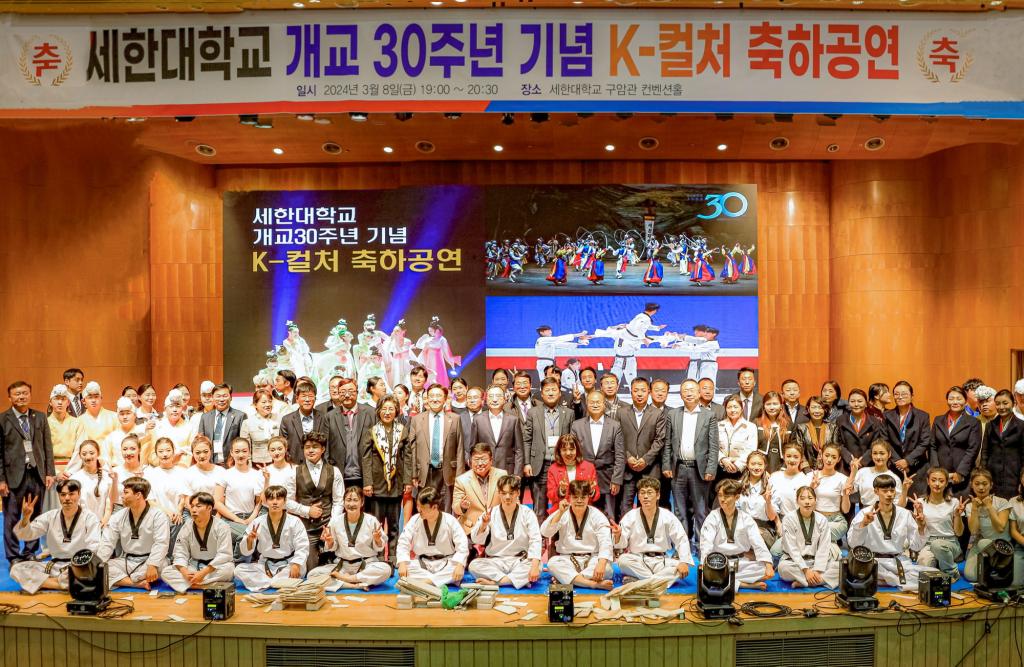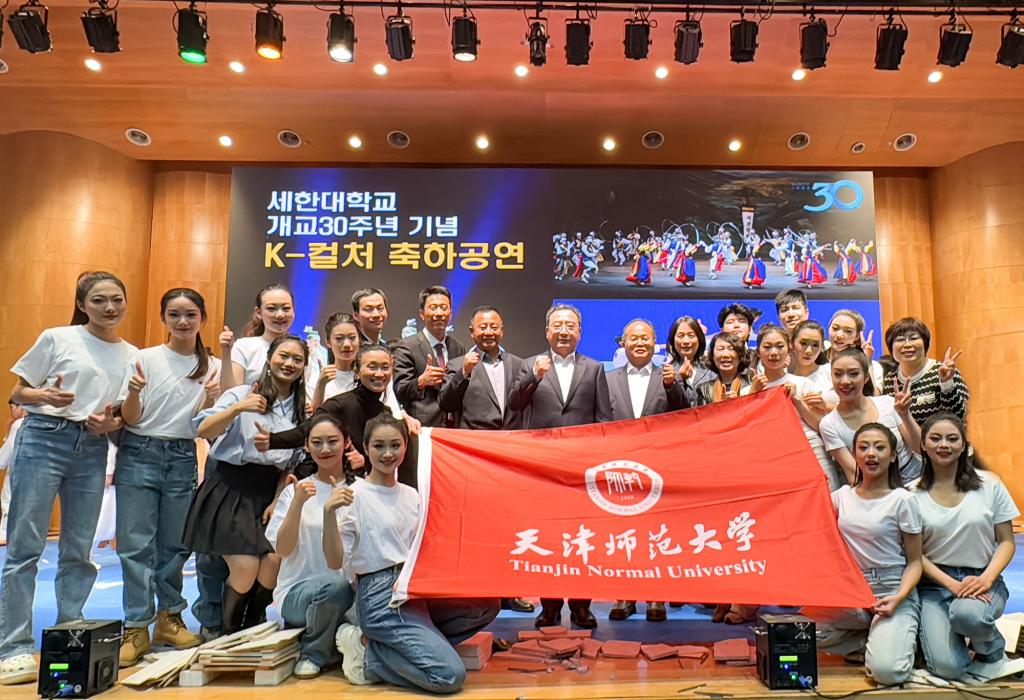 在世翰大学建校30周年中韩文化交流展演中,音乐与影视学院学生与韩国学生同台演出,表演了古筝与手鼓演奏《春之舞》、中国汉唐古典舞《十二花神》和歌曲《相亲相爱》《友谊地久天长》等精彩节目,现场气氛热烈、掌声不断,深受在场中韩师生欢迎。