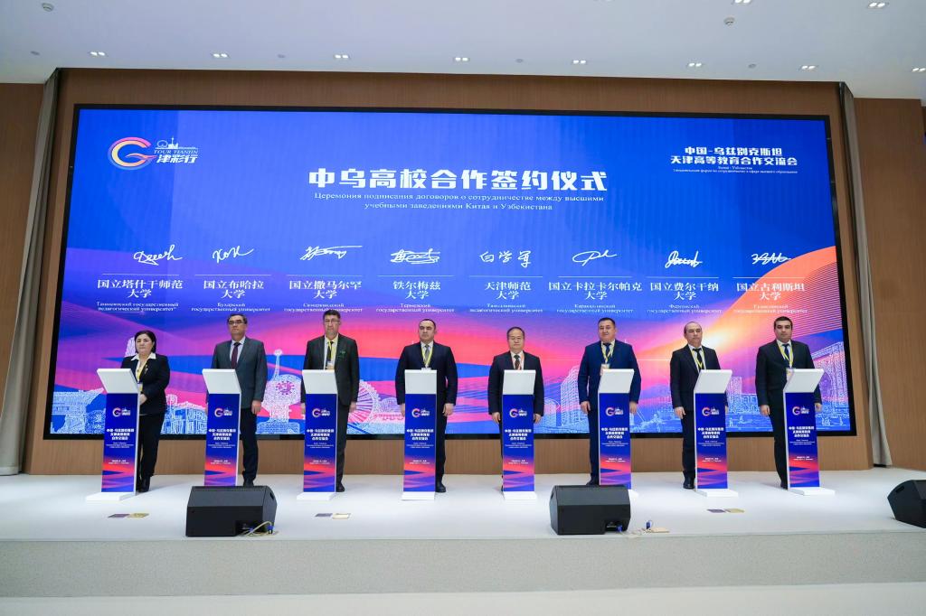 会上,天津市委教育工委副书记刘怡蔓和乌兹别克斯坦国立大学校长马德吉多夫致辞。我校同乌兹别克斯坦多所高校达成初步合作意向,双方高校将依托优势专业,在来华留学、科研合作、师生交流、国际中文教育等多个领域开展合作,共同探讨中乌高等教育国际交流合作的新思路、新路径和新举措,为今后双方开展更大范围、更宽领域、更深层次的交流合作建立了良好的开端。