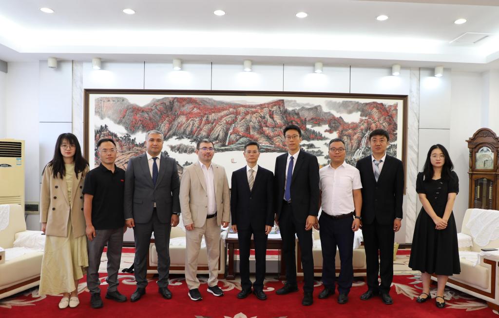 乌兹别克斯坦国立师范大学国际关系部主任索蒂博尔季耶夫・奥别克・法尔蒙忠诺维奇,我校国际交流处、数学科学学院相关负责人参加会谈。