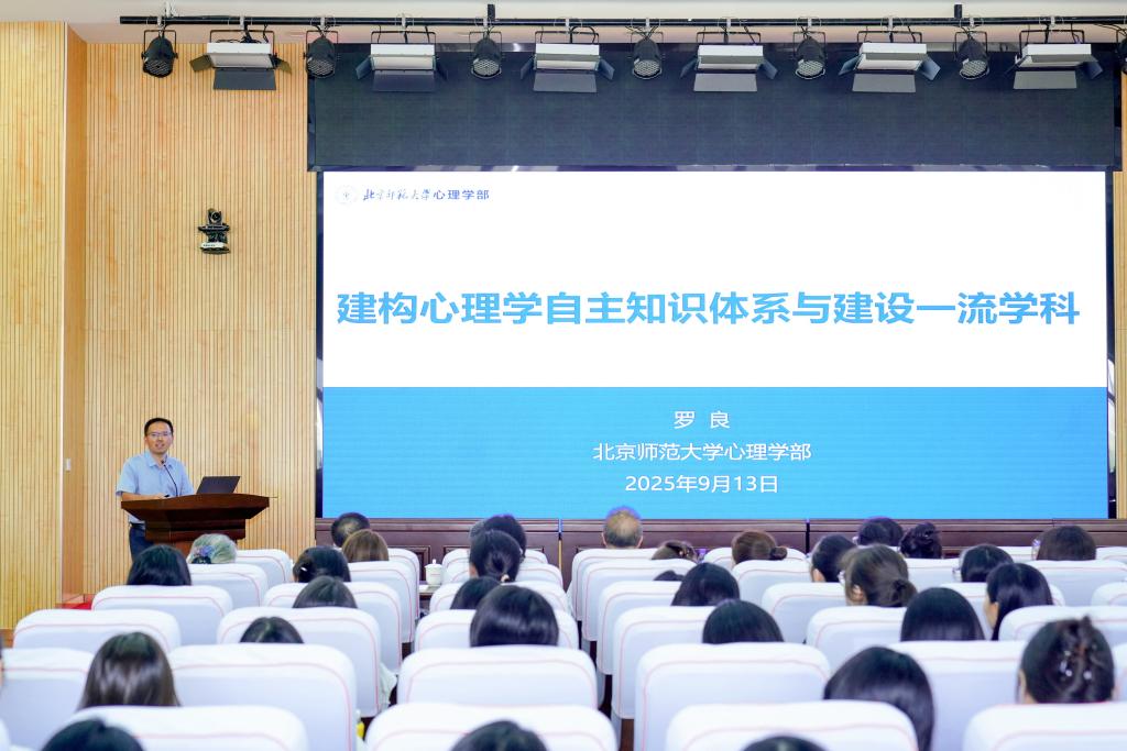 论坛上半场聚焦“心理学自主知识体系建设”,由白学军教授主持。北京师范大学心理学部部长罗良教授作题为“构建心理学自主知识体系与建设一流学科”的报告。报告解读了《教育强国建设规划纲要(2024-2035)》中的具体要求,详细阐述了建构中国心理学自主知识体系与建设一流学科的内在逻辑关系、衡量一流学科的三方面坐标,强调建设中国自己的心理学学术期刊,呼吁心理学界以自主知识体系建构为纲,在服务国家需求中实现国际突破。