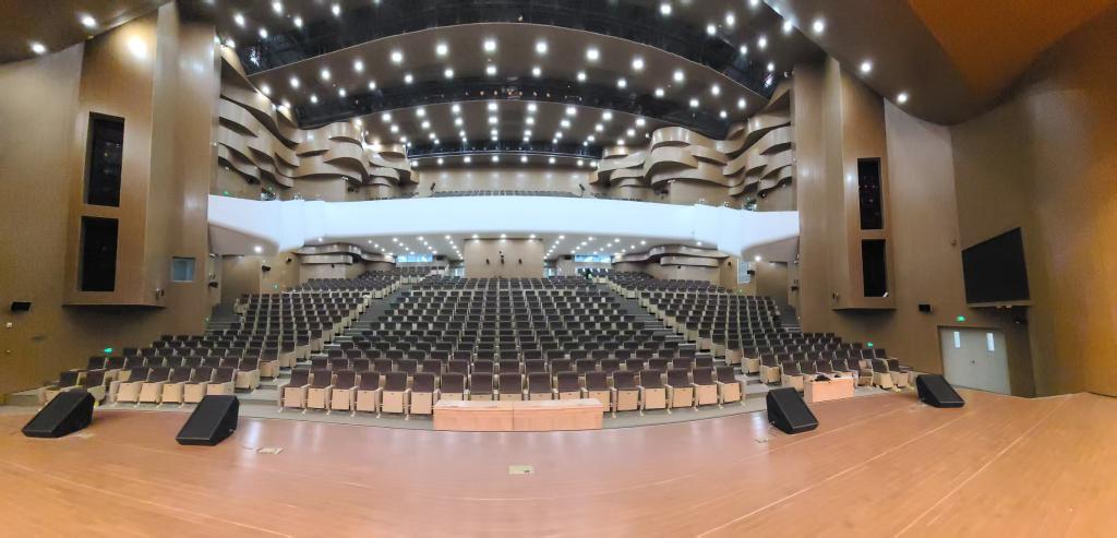 国际学术交流中心(综合活动展示中心)坐落于图书馆西侧,建筑面积8700 余平方米,配套专业排练厅、化妆间、道具存储间。在承载能力上,1048 个观众席位科学分布,一层 687 座、二层 361 座,无论是千人规模的大型活动,还是精致的小型交流,都能在此找到完美呈现的方式,确保每一位参与者都拥有良好体验。