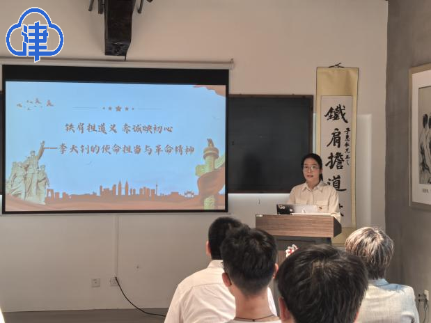 北洋法政学堂是中国近代第一所全日制法政专门学校,是李大钊政治活动的起点和重要阵地。师生参观了“铁肩担道义,热血润山河——李大钊与天津主题陈列”,结合珍贵文物和影像资料,深入了解李大钊在天津早期革命运动中的历史贡献,感悟李大钊的革命思想、崇高精神和伟大人格。参观结束后,学生党员的《铁肩担道义 赤诚映初心》微党课展示,深情讲述了李大钊先生的光辉业绩和崇高风范,号召青年党员在新时代的答卷上,书写无愧于党和人民的壮丽篇章。四名党员以《青春》之名发出青春倡议,铿锵有力的声音传递出新时代青年的责任与担当。