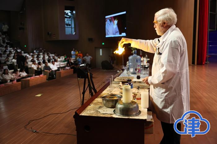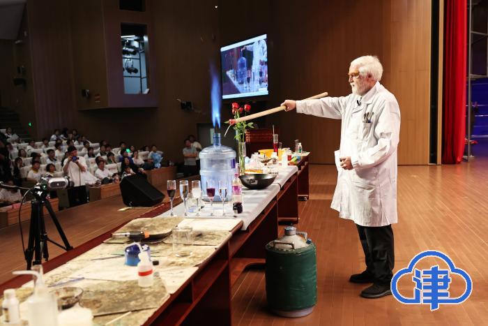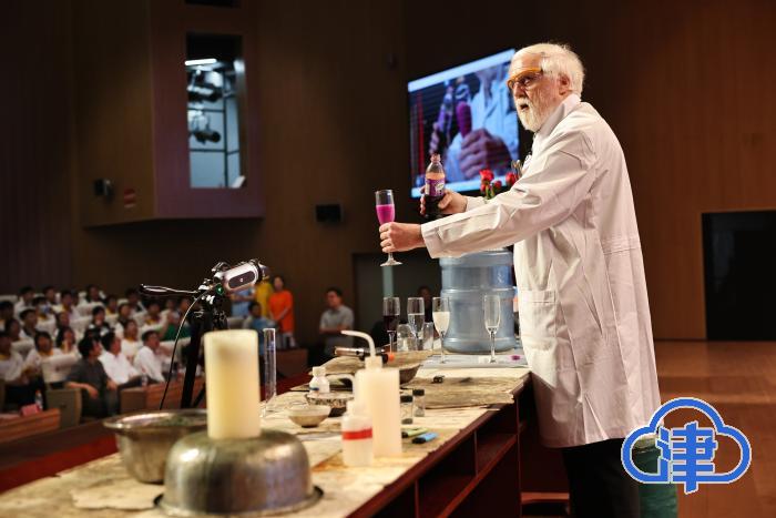 十多个精心设计的趣味科普实验串联下来,不仅使抽象的化学原理在师生沉浸式体验中得到了具象呈现,展现了“化学与生活密切相关”以及化学反应对人类社会和自然环境的深远影响,戴伟还时时提醒同学们“科学家要善于提问、会观察”“要通过实验来验证想法是否正确”“做实验要有耐心”等,激励学生要有探索精神、质疑精神和实证精神,在学生心中播撒科学的“种子”。