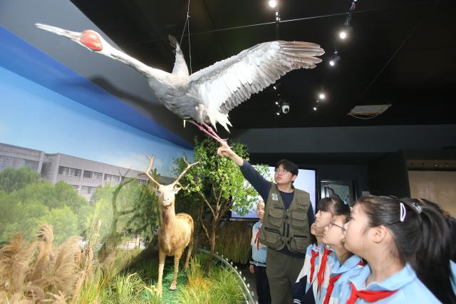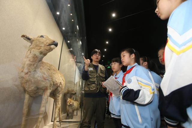 同学们近距离观赏珍贵生物标本,深入理解动物生命历程与生物多样性。