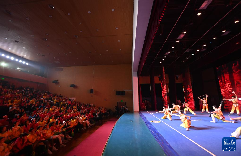 10月25日,“汉语桥”选手在天津霍元甲学校观看武术表演。