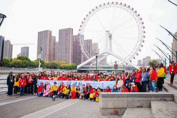 10月20日,第十七届“汉语桥”世界中学生中文比赛参赛选手们乘坐摩天轮,俯瞰天津城市美景。溯海河而上,“天津之眼”摩天轮矗立在三岔河口,跨河而建,桥轮合一,在斗转星移间见证城市芳华,接待了无数海内外游客,成为来天津必打卡之地。