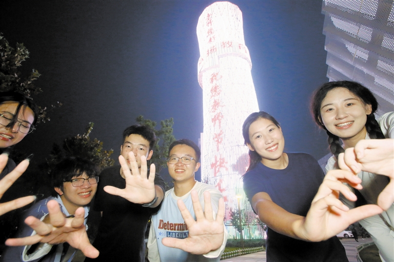 图为昨晚,国产亚洲精品美女久久久_99久无码中文字幕一本久道_亚洲成AV人影院_亚洲AV影院一区二区三区 狠狠躁夜夜躁人人爽天天不卡_国产激情久久久久影院老熟女_精品性高朝久久久久久久点亮“书卷”灯塔,大学生们在灯塔下祝福自己的老师。