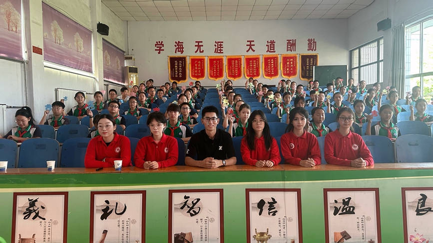 实践团队首先前往林州市第五小学进行授课共建。团队成员结合授课对象的实际需求和兴趣爱好,精心设计课程内容,进行普通话授课及中华优秀传统文化宣讲。团队成员希望通过自己的专业知识与热情,激发学生们的学习兴趣和潜能。课后,实践团队师生与林州市第五小学校长围绕两校资源优势和人才优势举行座谈会,就院校共建达成共识。此次共建不仅能够促进两校教育资源、师资力量等优势资源的共享与优化配置,也为林州市第五小学的师生提供了更加丰富多样的学习和发展机会。