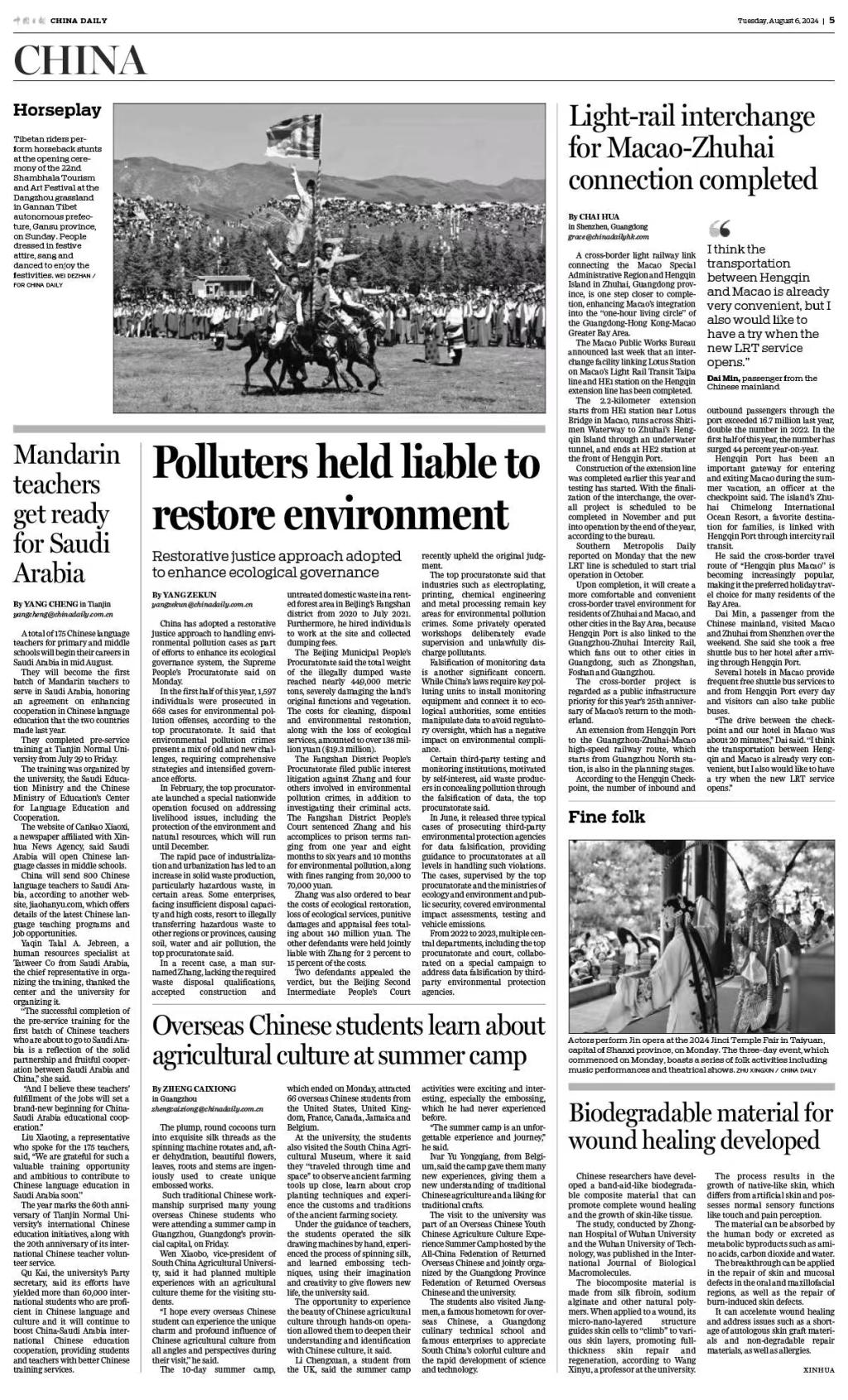 来源:2024年8月6日 CHINA DAILY 第5版