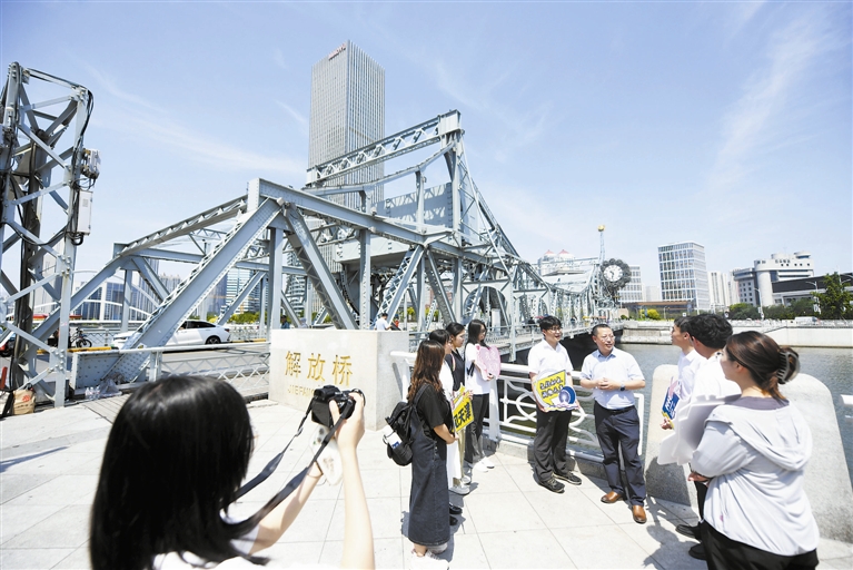 图为师生现场了解解放桥历史。