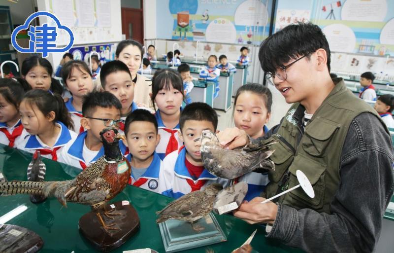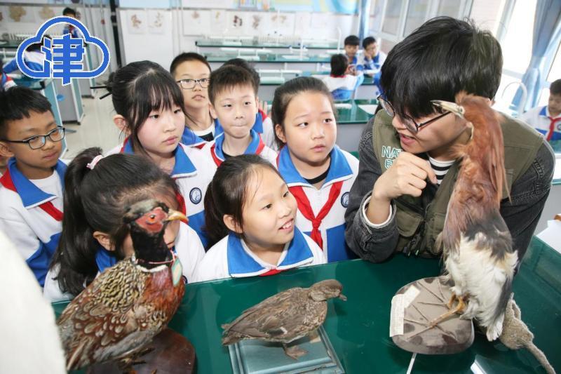 志愿者通过环颈雉、红腹锦鸡、白鹭、鹦鹉等鸟类活体、标本、图片等丰富的形式,介绍鸟类的特征、生活习惯、候鸟迁徙线路等,向孩子们普及保护鸟类的重要性。