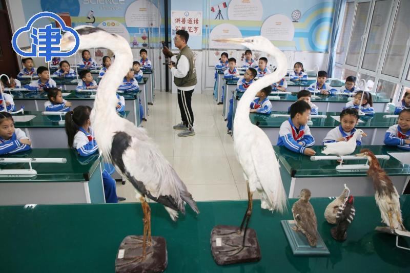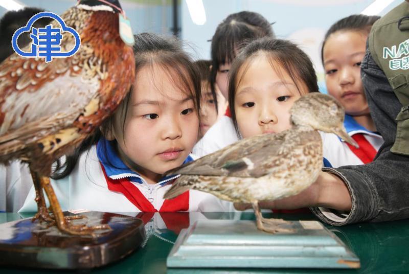 孩子们在精彩的讲解中,用好奇眼光观赏着鸟类标本,纷纷表示要做一名光荣的爱鸟护鸟卫士,保护鸟类资源、构建⼈鸟和谐的自然环境,维护地球家园的⽣态平衡。