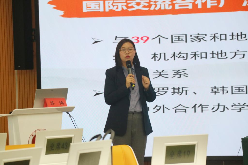 国际交流处副处长苏博介绍了参加国际会议、境外培训、访学研修项目以及国际科研合作等方面,强调了因公出国(境)申请程序、流程以及各方面注意事项,并希望新入职教师充分认识知识和技术的更新迭代,经常浏览关注国家留学基金委官方网站,及时了解国际交流前沿研究方向,积极参与国际交流合作项目。