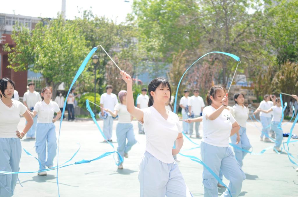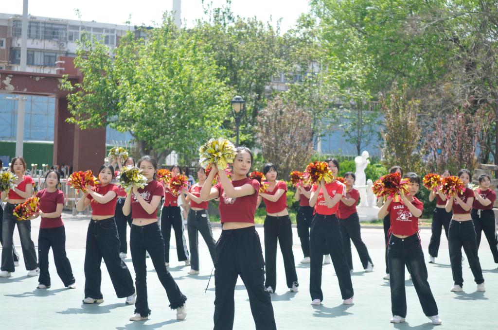 伴随着动感的旋律,25支代表队手持彩绸、铃鼓、花球等轻器械,以整齐划一的动作、充满童趣的队形变换,呈现了一场别开生面的团体操表演。学生们将幼儿舞蹈、韵律操等专业课程内容融入编排,动作设计兼具活力与美感,展现了学前教育专业“寓教于乐、以体育心”的教学理念。表演中,“花朵绽放”“同心圆”等队形象征着幼教工作者“托举未来”的使命,而轻器械的巧妙运用则凸显了学前教育注重动手能力与创造力培养的特色。