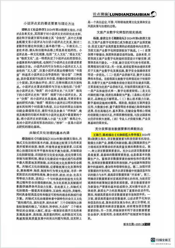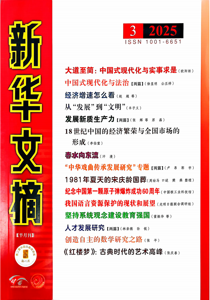 此次摘编是继2024年第3期文章《论古籍整理追求旨趣的七个纬度》(作者:王世伟)获《新华文摘》2024年第14期转载及2024年第5期文章《历史上的古籍保护意识与措施》(作者:杜泽逊,特约编辑:周余姣 责任编辑:联谊)获《新华文摘》2025年第2期全文转载,并荣登当期封面目录后,在一年内第三次被《新华文摘》转载。