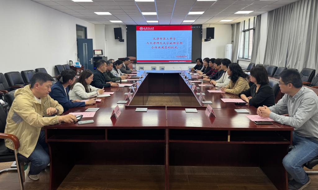 本站讯(通讯员 陈洁)近日,地理学部与天津市第三中学举行合作共建签约仪式。天津市第三中学党委书记刘扬、副校长孙琳带领相关教师和学生代表35人来我校参加共建活动。地理学部党委书记苏睿先、副书记刘亮、副院长胡蓓蓓、各系主任及教师代表参加签约仪式。