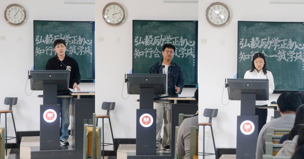 活动特邀推免研究生孙金峰、陈文超分享成长智慧。孙金峰以“自律者自强”为主线,阐述连续三年专业第一的进阶路径;陈文超以“突破边界·多维成长”为主题,讲述学术科研与学生工作协同发展的平衡之道。2024级学委代表窦志慧发起“学风领航行动”倡议,提出“每日学习清单”“跨年级学术工作坊”等具体行动,推动学风建设从理念倡导向行为实践转化。