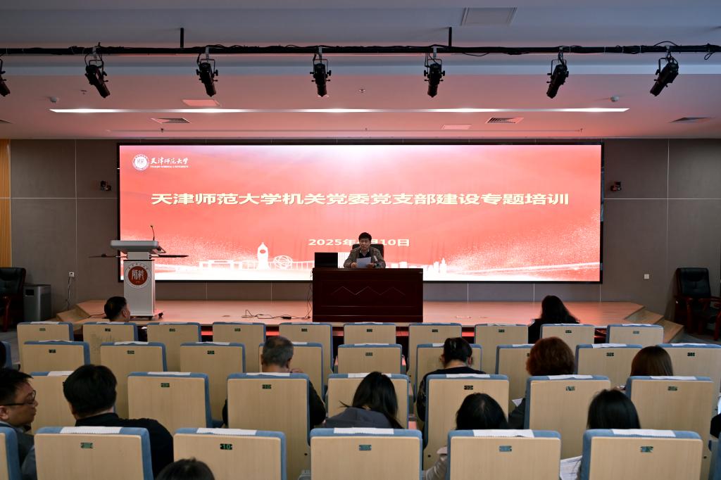本站讯(通讯员刘洋)为进一步落实机关党委作风建设专项巡察整改工作要求,进一步加强机关党委党支部建设,规范党支部换届工作,严肃换届纪律,4月10日下午在京津冀教师发展协同创新中心一楼报告厅,机关党委召开党支部换届工作专题培训会,邀请校党委组织部副部长赵军进行培训,党委督查室主任、机关党委书记吴春发主持培训会,机关各党支部组织委员及党员骨干参会。