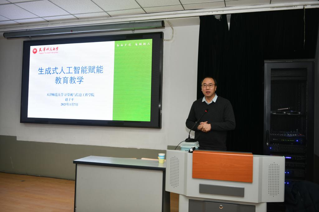 学院领导、全体教职工满怀期待,共同探索人工智能与教育深度融合的奥秘。赵子平教授作为该领域的资深专家,积累了丰硕的研究成果,此次前来旨在将最前沿的学术理念与实践经验传递给教育从业者们。