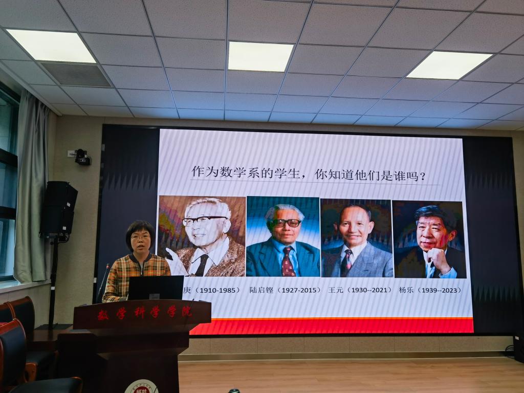 讲座中,杨静详细讲述了陆启铿、王元、杨乐三位杰出数学家在科研道路上不畏艰难、勇往直前的感人故事。她通过生动具体的事例,展现了老一辈数学家们潜心钻研、勇攀科学高峰的卓越创新精神和对科学事业的无限奉献精神。杨静勉励在场的学生们要珍惜学习机会,立志高远,同时提醒他们学习的道路并非坦途,需要长期的准备、坚定的决心以及不懈的努力,只有汗水与坚持才能铺就通往成功的道路。