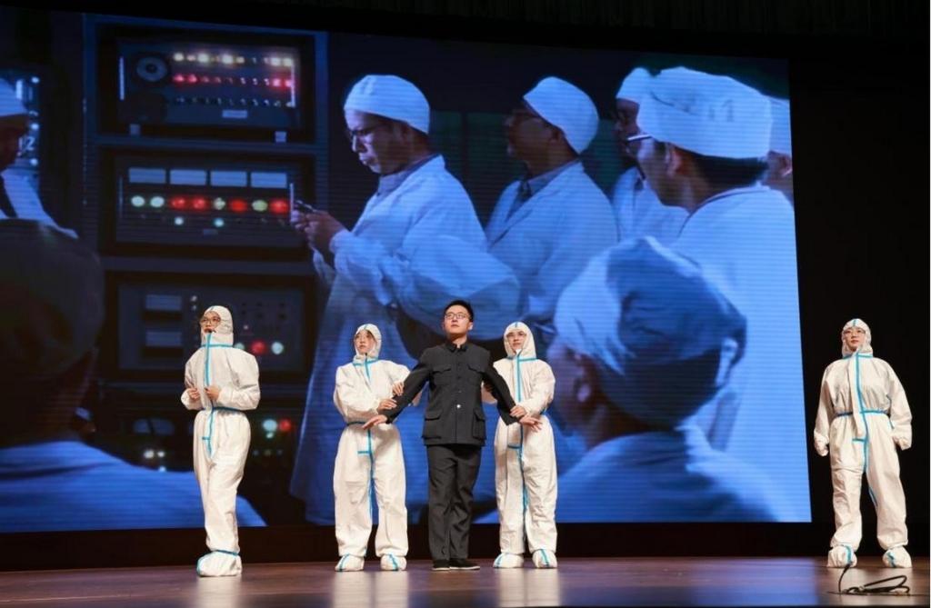 舞台剧《邓稼先》以其独特的艺术手法,巧妙地将邓稼先的传奇人生以倒叙的方式展现在观众面前。从邓稼先青年时期怀揣科学梦想赴美求学,到克服重重障碍毅然回国投身科研事业;从在事业初创时期的艰难探索,到在大漠深处隐姓埋名、默默奉献的无私精神;直至他不幸罹患癌症,不舍地告别了他挚爱的科学与国家,每一幕都触动着观众的心弦。深情的演绎,让邓稼先的形象跃然台上,他的家国情怀、责任担当和无私奉献精神,深深打动了每一位观众。
