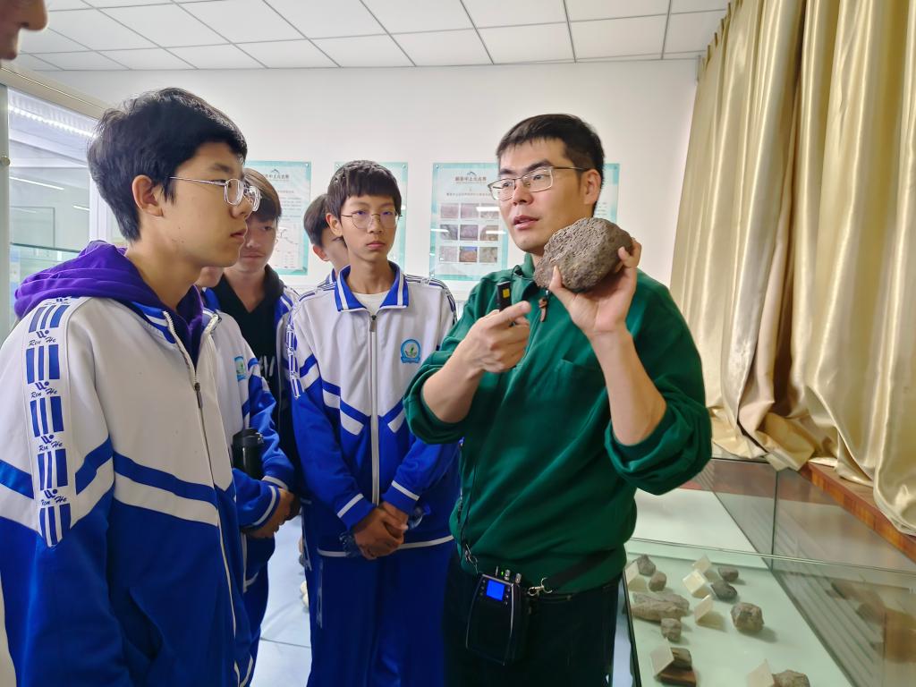 在地质标本展室,同学们在王海涛老师的带领下,探索了岩石矿物和古生物化石的奥秘,感受到地质变迁的魅力,探寻倾听了远古生命的诉说,逐步学会了如何用发展的眼光看待外部环境变化。