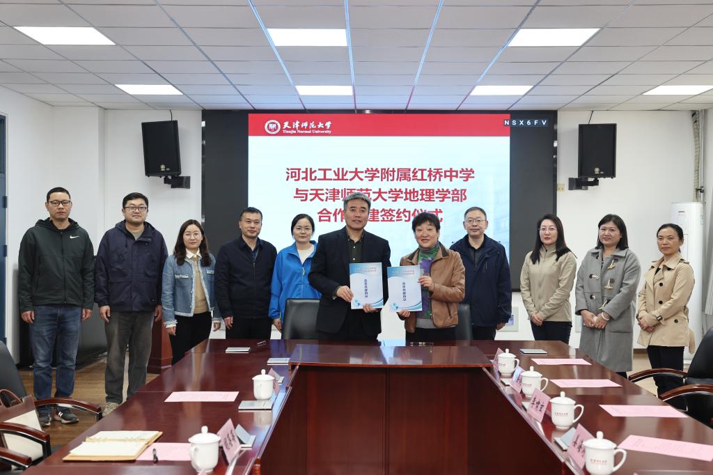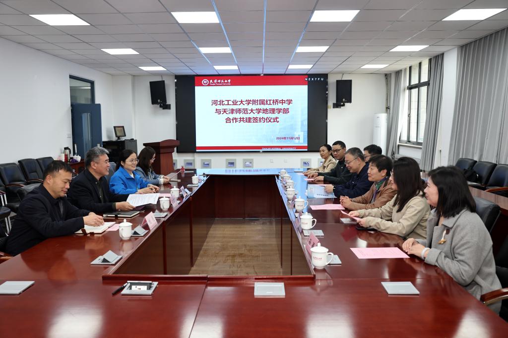 签约仪式前,苏睿先对河北工业大学附属红桥中学一行到访表示热烈欢迎,并简要介绍了地理学部的办学理念、办学特色及近年来的教学科研发展总体情况。苏睿先表示,学部将以此合作共建为契机,依托高校优势资源,进一步助力中学教学科研一体化建设。希望双方未来在师范生培养、科普宣传、专家讲座、招生宣传等方面进一步深化合作,共谋发展新篇章。